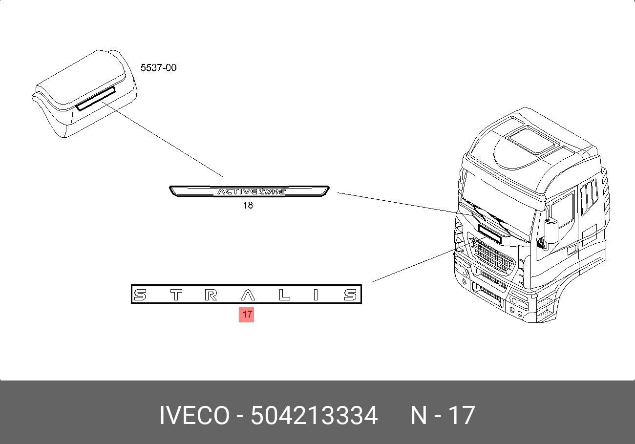 Informations sur le produit "Original Iveco 504213334 Schriftzug / Emblem vorne STRALIS"
